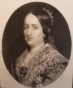 - “D. Maria II, rainha de Portugal […]”Reprodução de um retrato litografado a representar Dona Maria II de Portugal (1819-1853). Constam também da imagem o nome e o título régio da retratada, bem como uma dedicatória impressa. Portugal, Torre do Tombo, Jorge de Almeida Lima, cx. 36, doc. 541.
